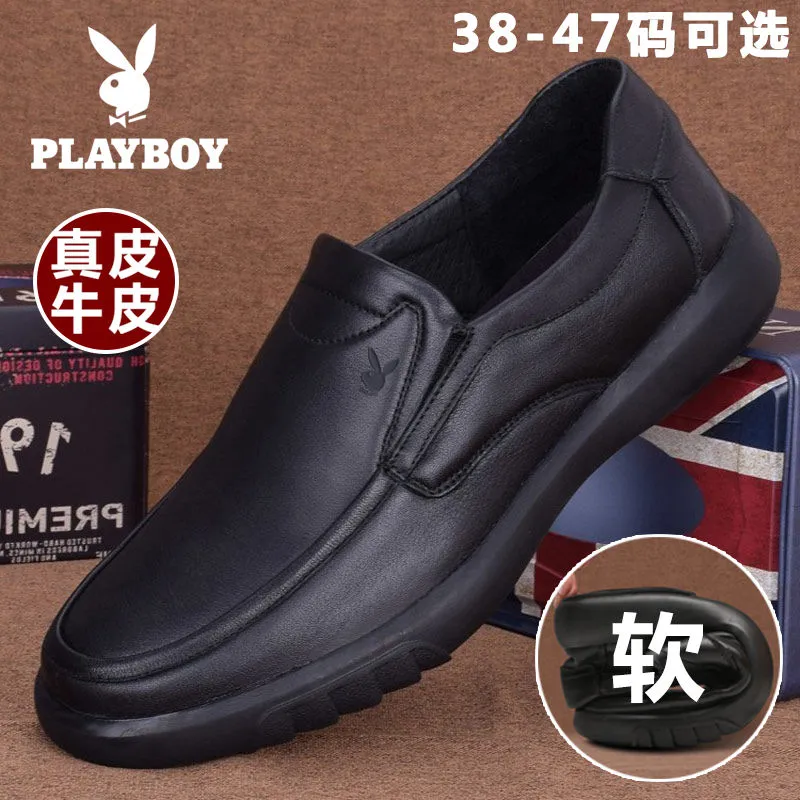 Playboy men's leather shoes, leather soft soles, business casual slip-ons, leather shoes, middle-aged and elderly dad shoes, plus size shoes