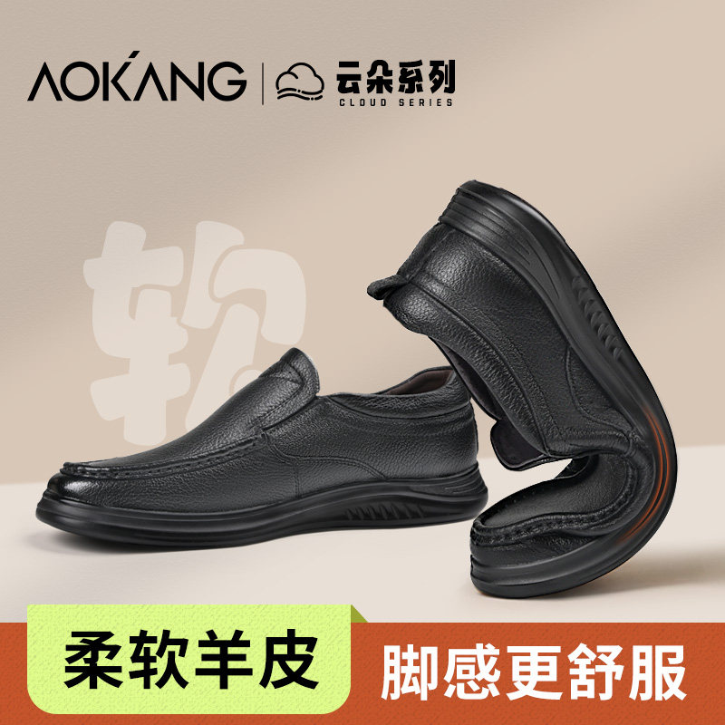 Aokang Dad Leather Shoes Men's Sheepskin One Kick Leather Soft Sole 2026 New Middle-Aged Father Casual Men's Shoes