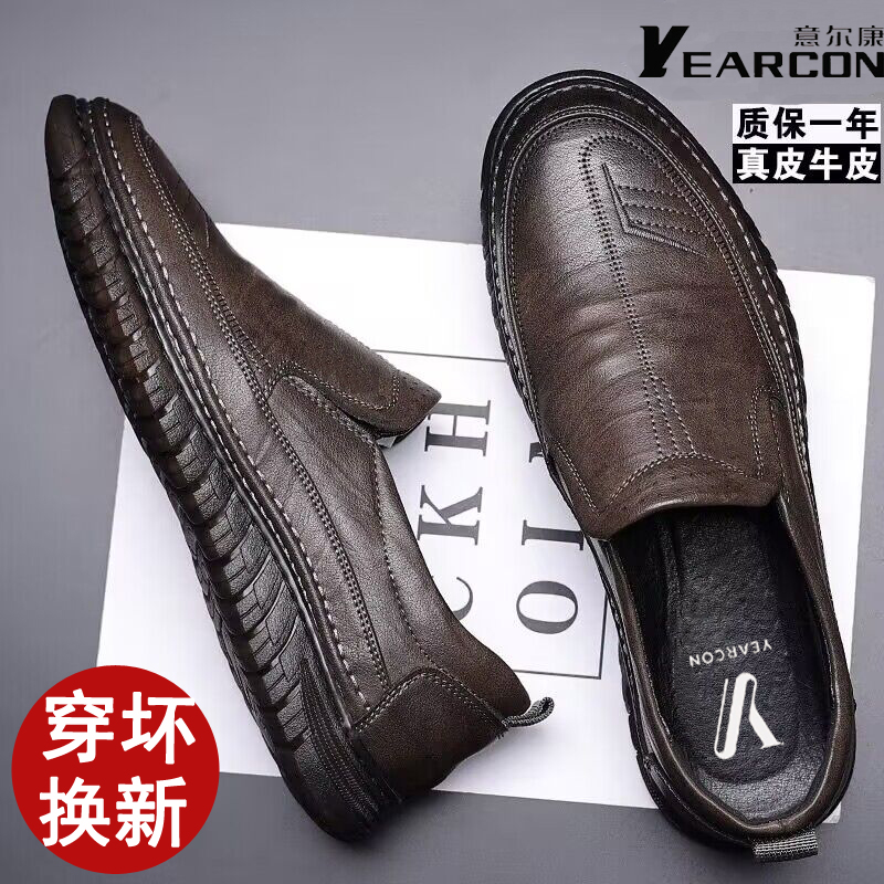 Yierkang men's shoes autumn one-foot leather shoes men's leather casual breathable soft sole non-slip middle-aged and elderly dad shoes