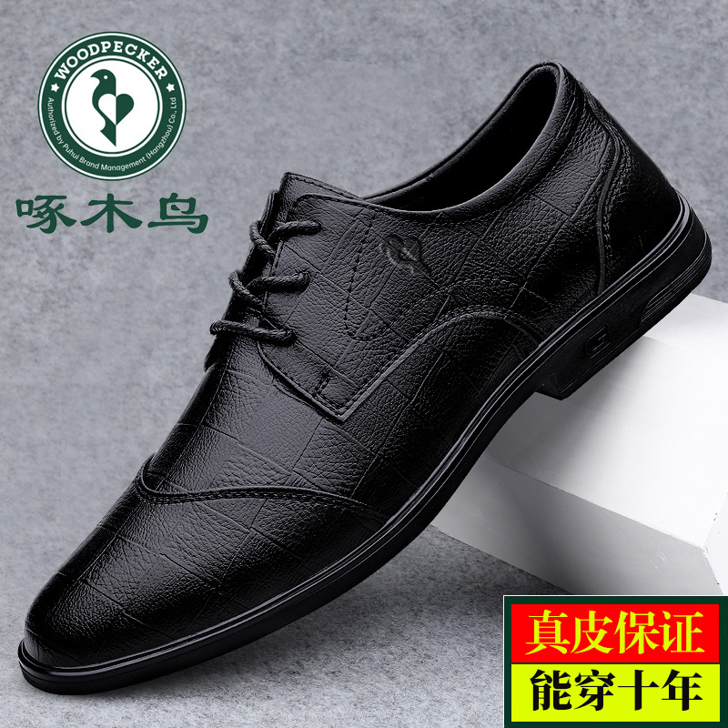 Woodpecker Men's Casual Business Formal Leather Shoes Men's Genuine Leather Breathable Black British Autumn New Men's Shoe Trend