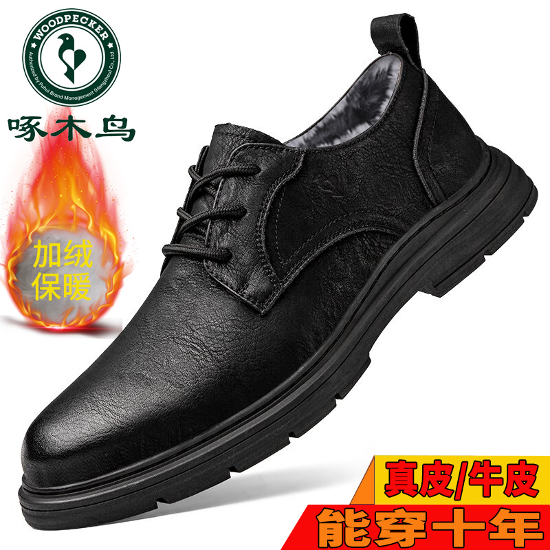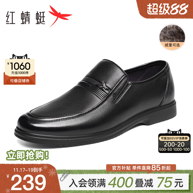 Red Dragonfly Men's Shoes Autumn and Winter New Business Casual Leather Shoes Men's Genuine Leather Cotton Shoes Soft Sole Comfortable Middle-Aged Dad Shoes