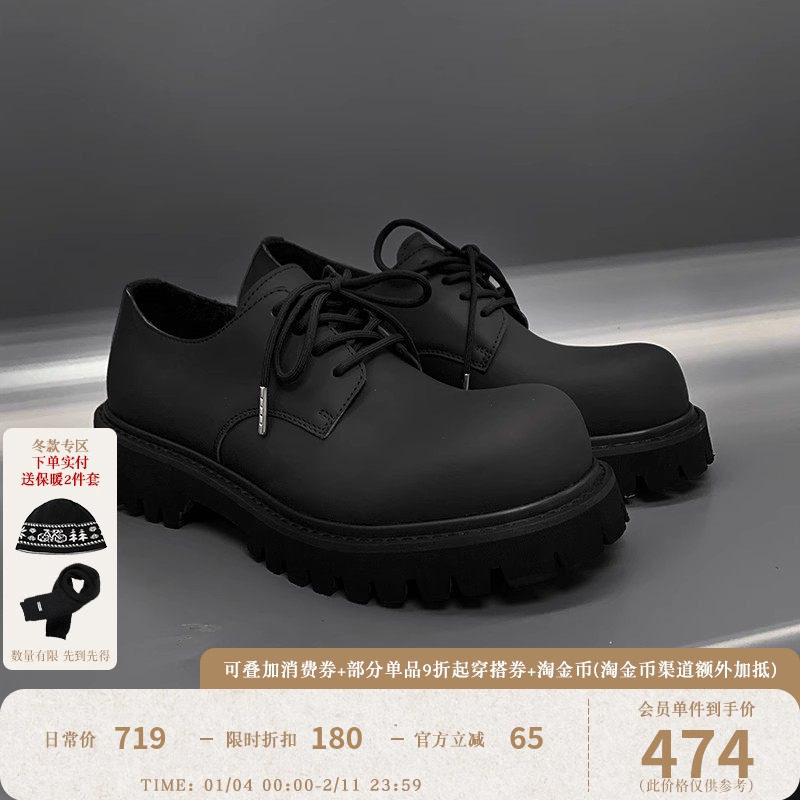 KREATE "Lightweight like sneakers" top layer cowhide round toe matte platform sole Zhang Jie is the same Derby leather shoes
