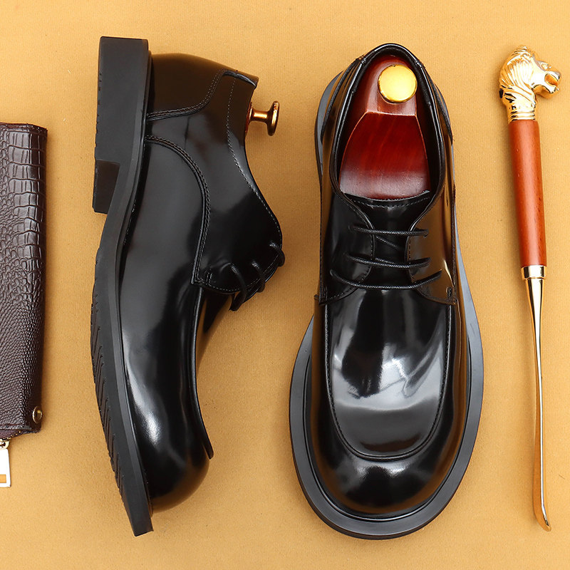 Round toe double flash structure derby leather shoes daily commuting height increase versatile TERRAINCOGNITA