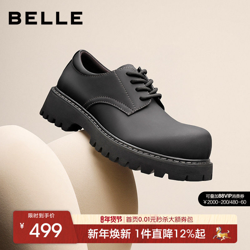 Star same style Belle men's thick-soled heightening casual leather shoes men's leather derby cargo shoes A2040