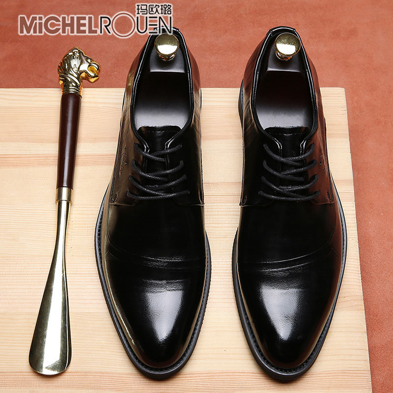 Ma Oulu leather men's leather shoes British style trend heightened breathable men's shoes soft sole business men's formal leather shoes