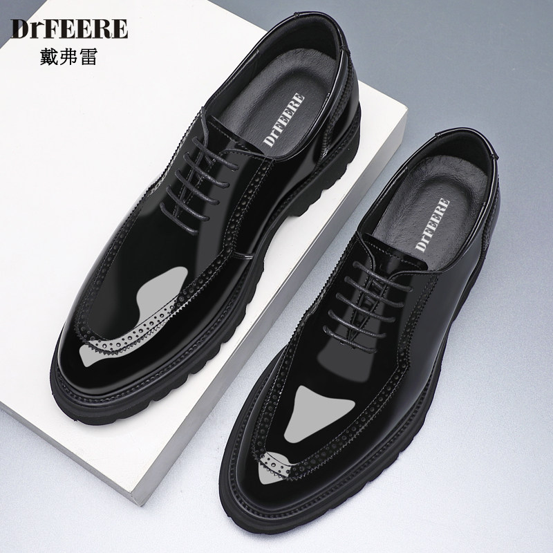 Da Freyne heightened leather shoes men's 8cm business formal wear heightening shoes brogue top layer cowhide groomsmen wedding shoes men