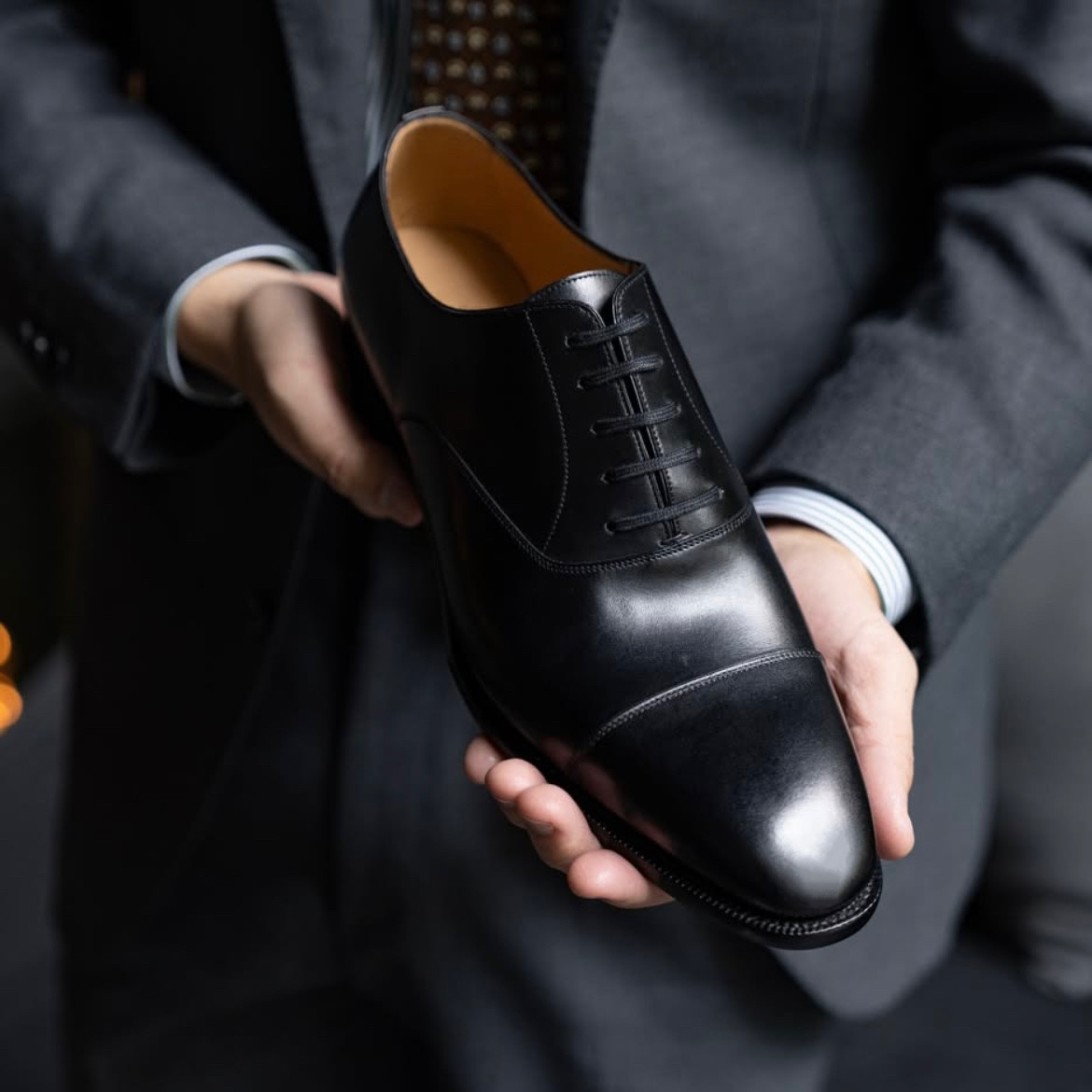 AXEN Handmade Goodyear Italian Box Calfskin Black Men's Oxford Three-Joint Leather Shoes Wedding Shoes