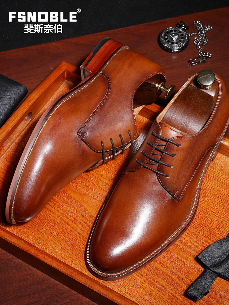 FSNOBLE leather shoes men's formal business leather brown wedding shoes large size handmade men's top layer cowhide men's shoes