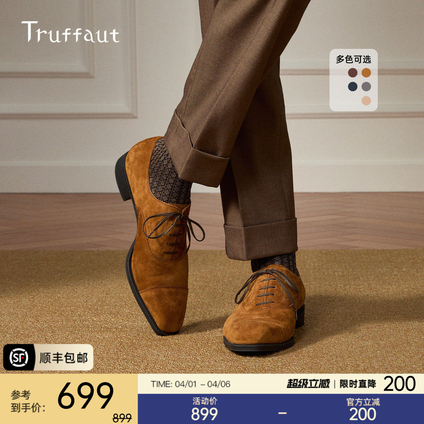 Truffaut sole men's shoes genuine leather business dress leather shoes men's British fetal cow anti-suede oxford shoes spring