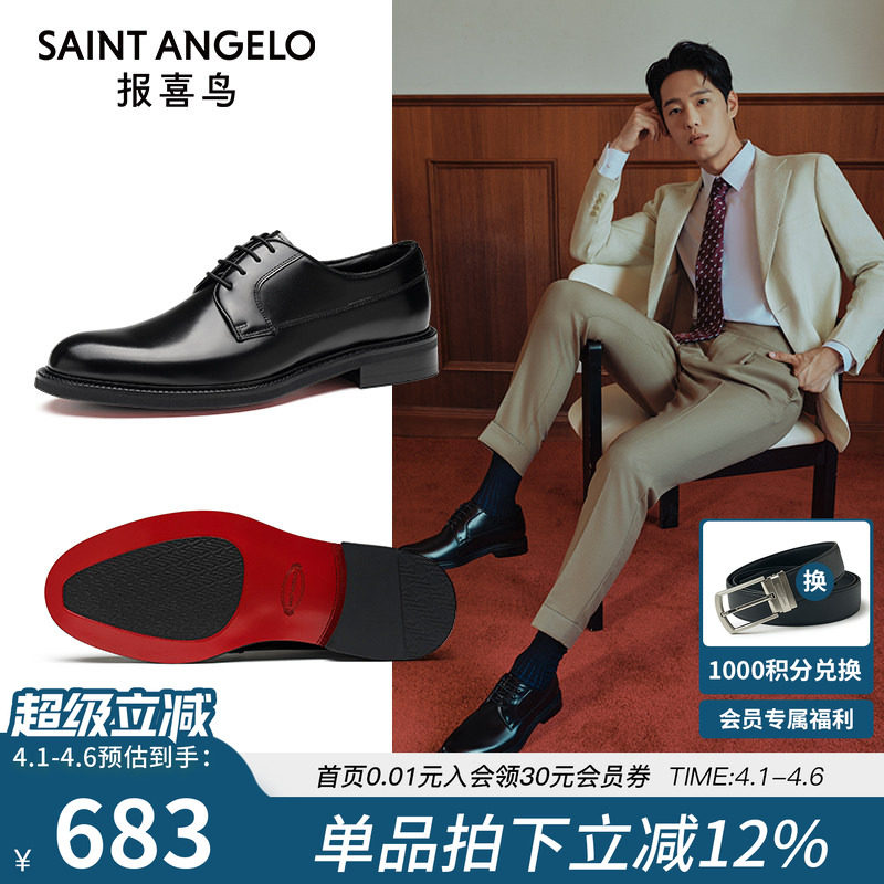 Annunciation bird red sole shoes spring and autumn men's formal leather shoes high-end calf leather British wedding groom wedding shoes