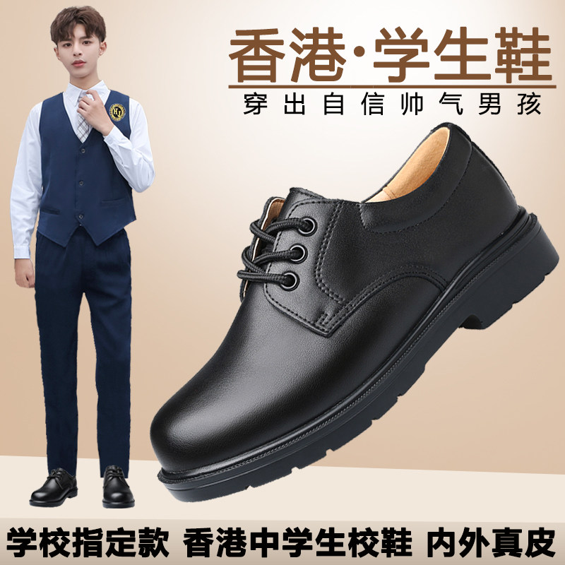 Leather shoes boys teenagers middle school students black leather soft soles big boys boys British style men's version spring and autumn campus formal wear