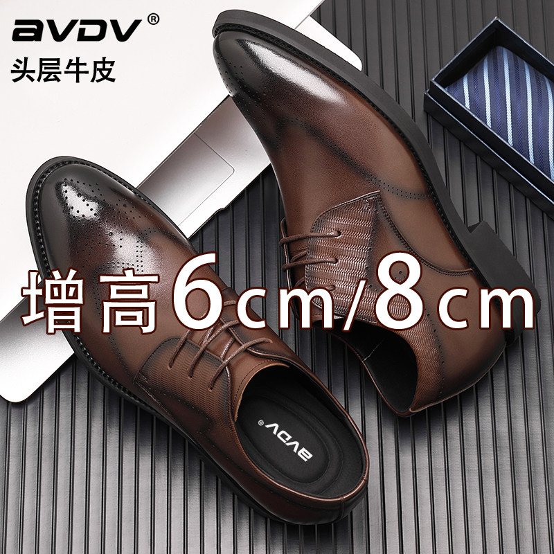 Men's shoes for the elderly, leather, breathable, formal business leather shoes, men's bright leather, pointed toe, middle-aged men's inner heightening leather shoes