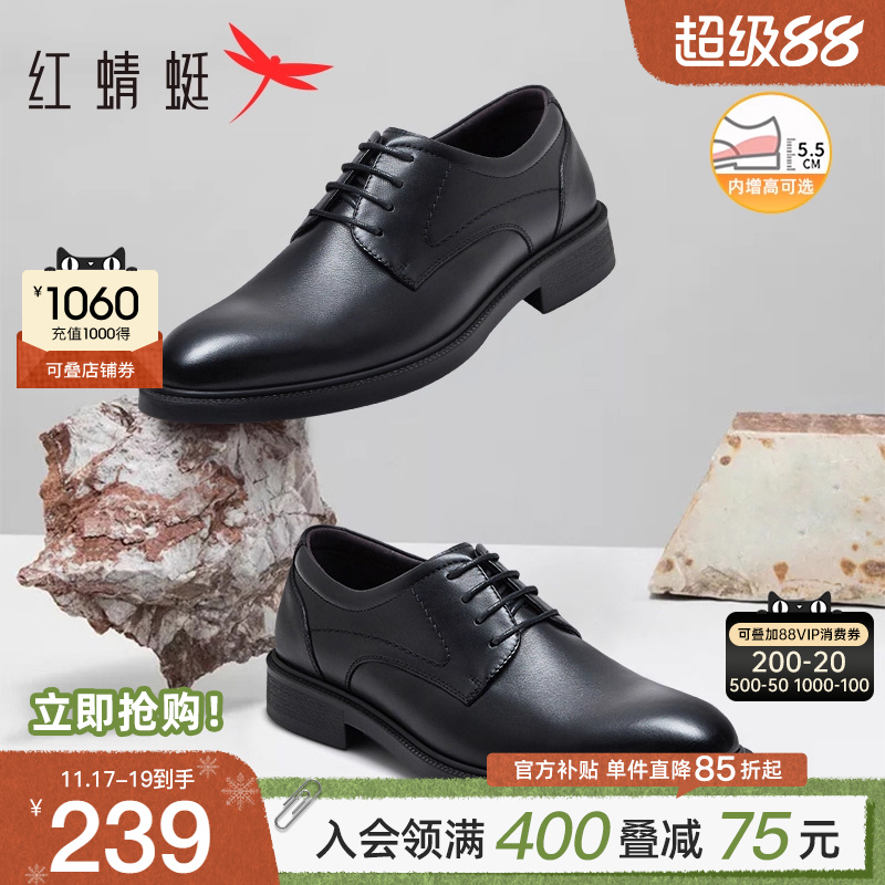 Red Dragonfly Men's Shoes Korean Leather Business Formal Men's Leather Shoes Casual British Wedding Shoes Breathable Soft Sole Derby Shoes