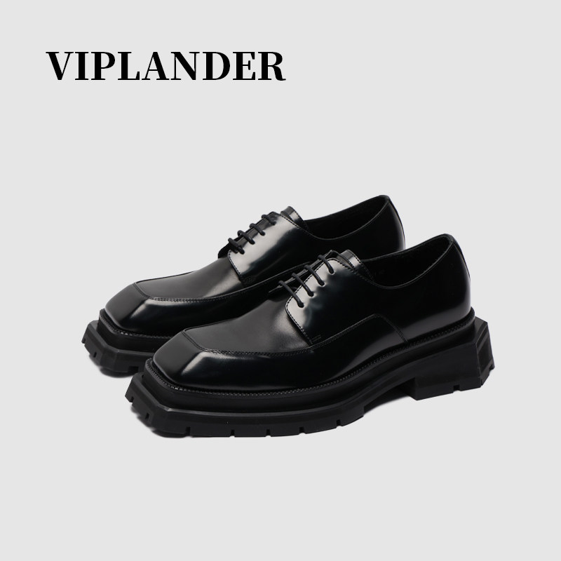 viplander square toe derby shoes niche black leather shoes imported cowhide men's casual low-top men's shoes 143201