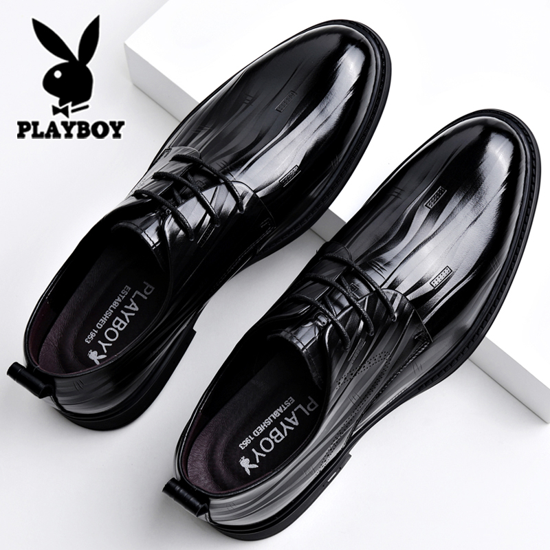 Playboy leather shoes men's leather business formal wear inner heightened brown pointed toe wedding groom plus size winter plus plus