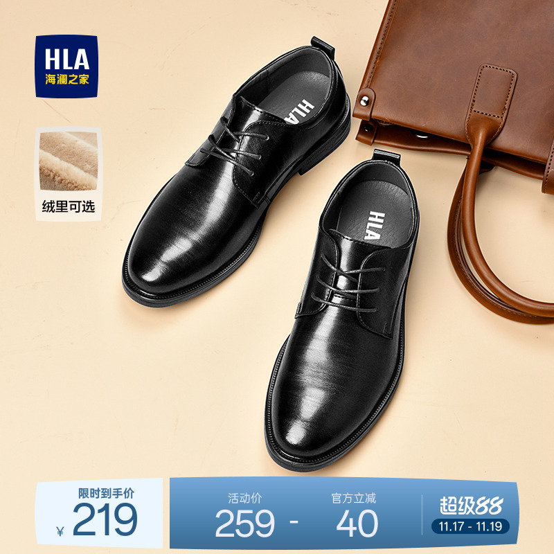 HLA/Heilan House men's shoes formal pointed toe heightened leather shoes business autumn and winter new shoes wedding groom shoes plush plush