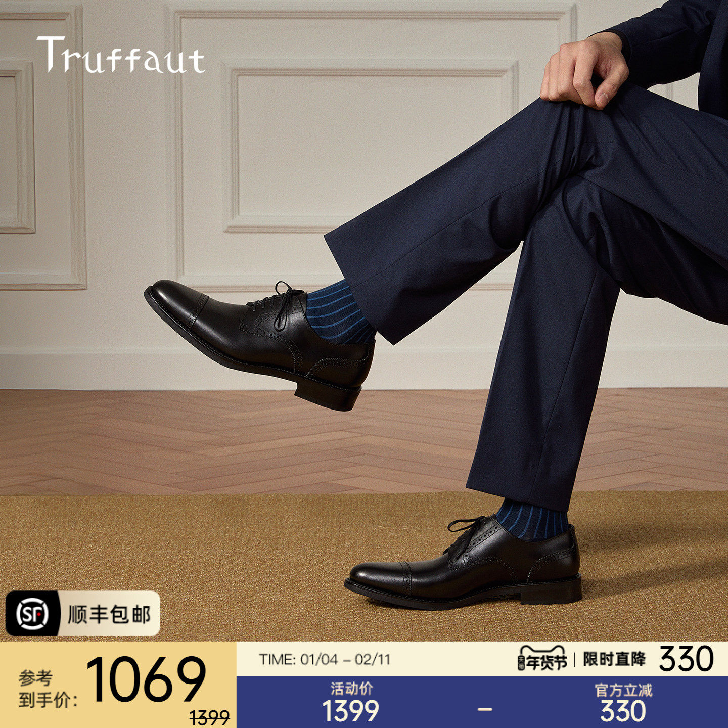 Truffaut Goodyear Men's Shoes Hand Carved Genuine Leather Derby Shoes British Casual Leather Shoes Men's Business Formal Autumn