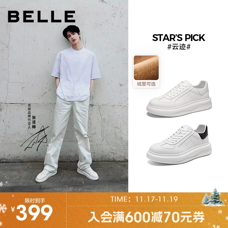 Zhang Linghe's same Belle Cloud Trace men's casual sneakers with heightened platform white shoes with fleece A1826AM5