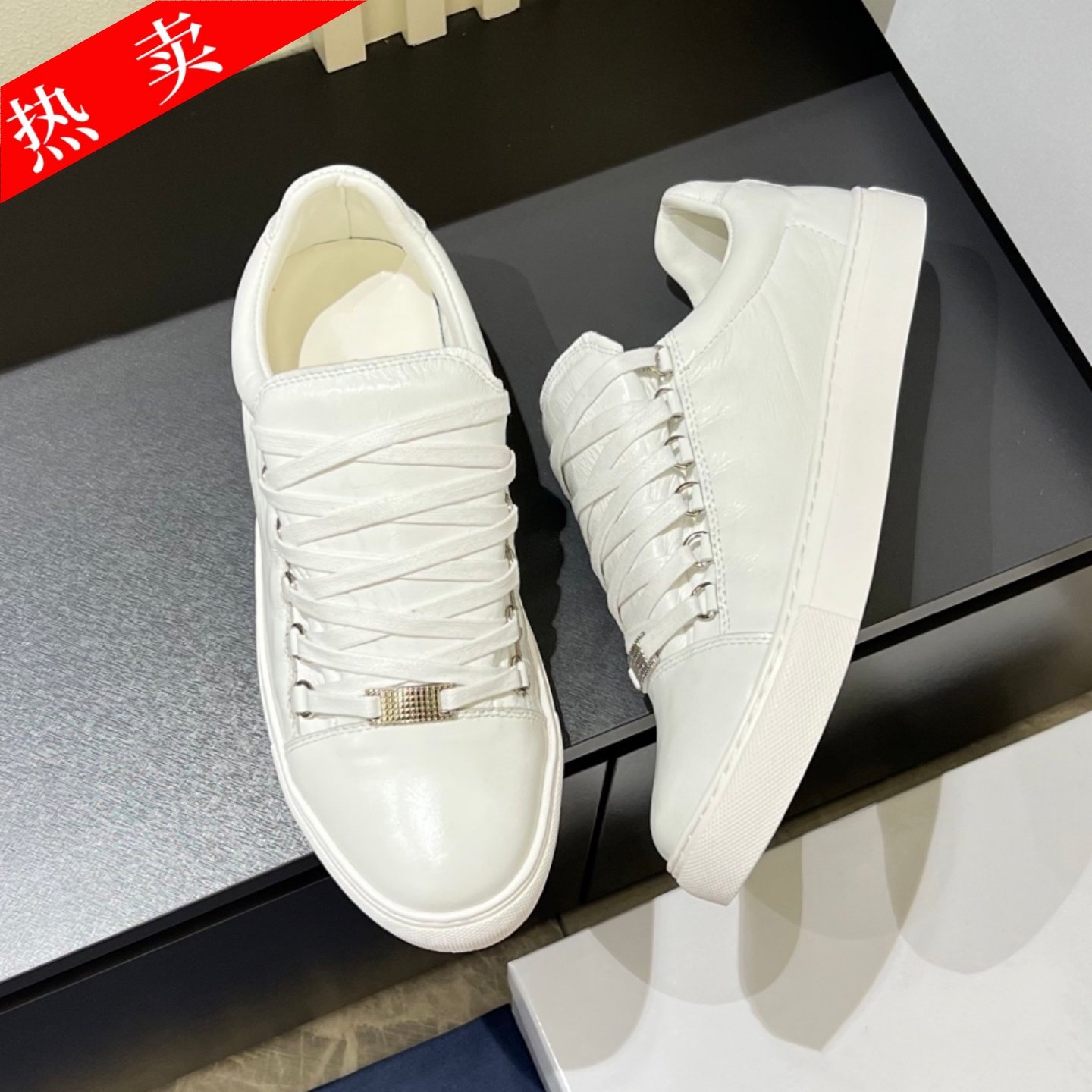 Men's shoes, luxury men's white shoes, trendy brand ruffians, handsome low-top leather shoes, men's summer European station trendy shoes