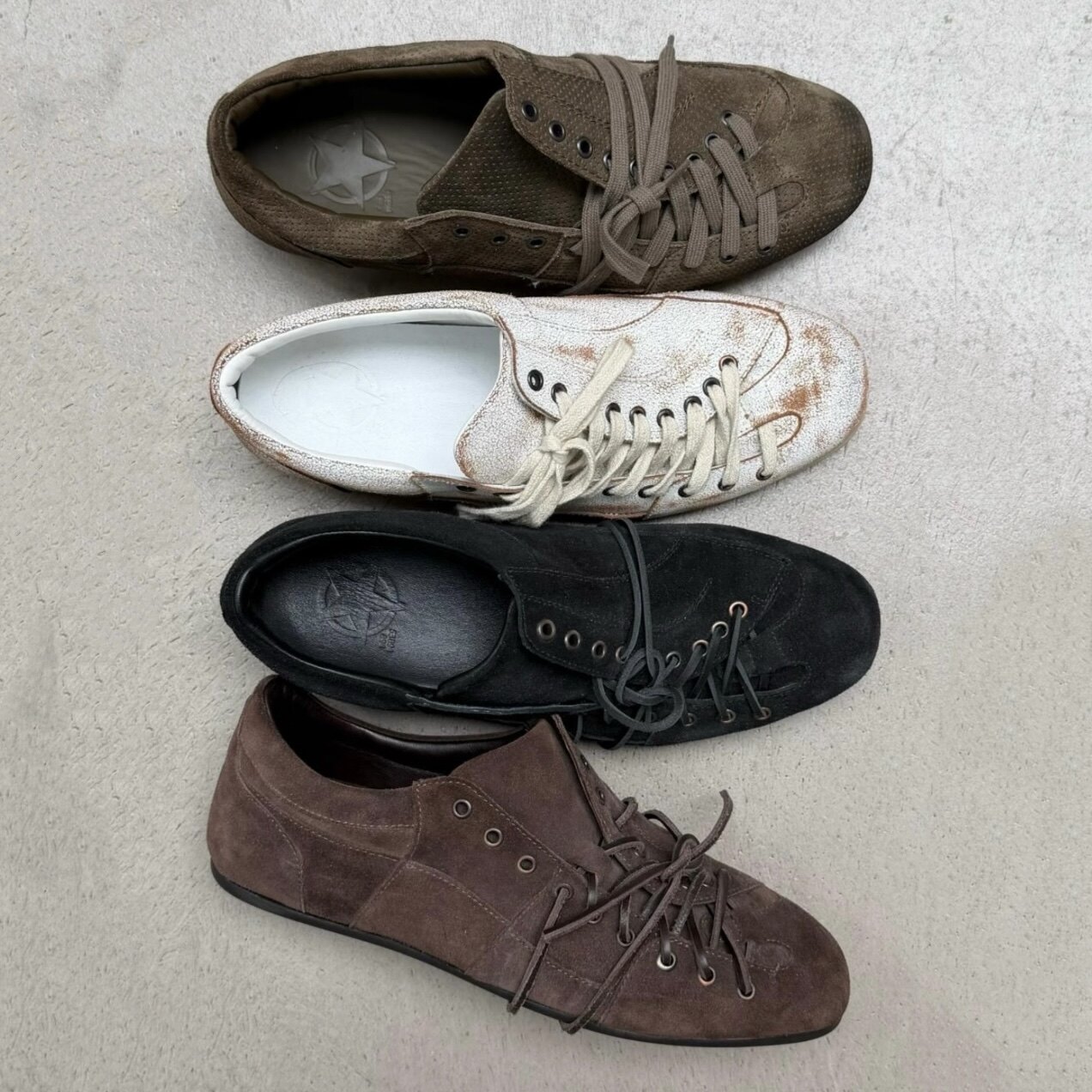 No faith studios Special-shaped deconstruction suede flat soccer German training top layer cowhide vintage sneakers