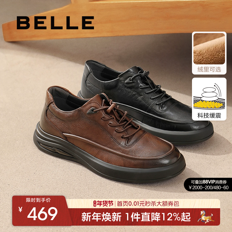 Belle Men's Platform Business Black Board Shoes Winter Cowhide Casual Business Sneakers with Fleece A1685DM4