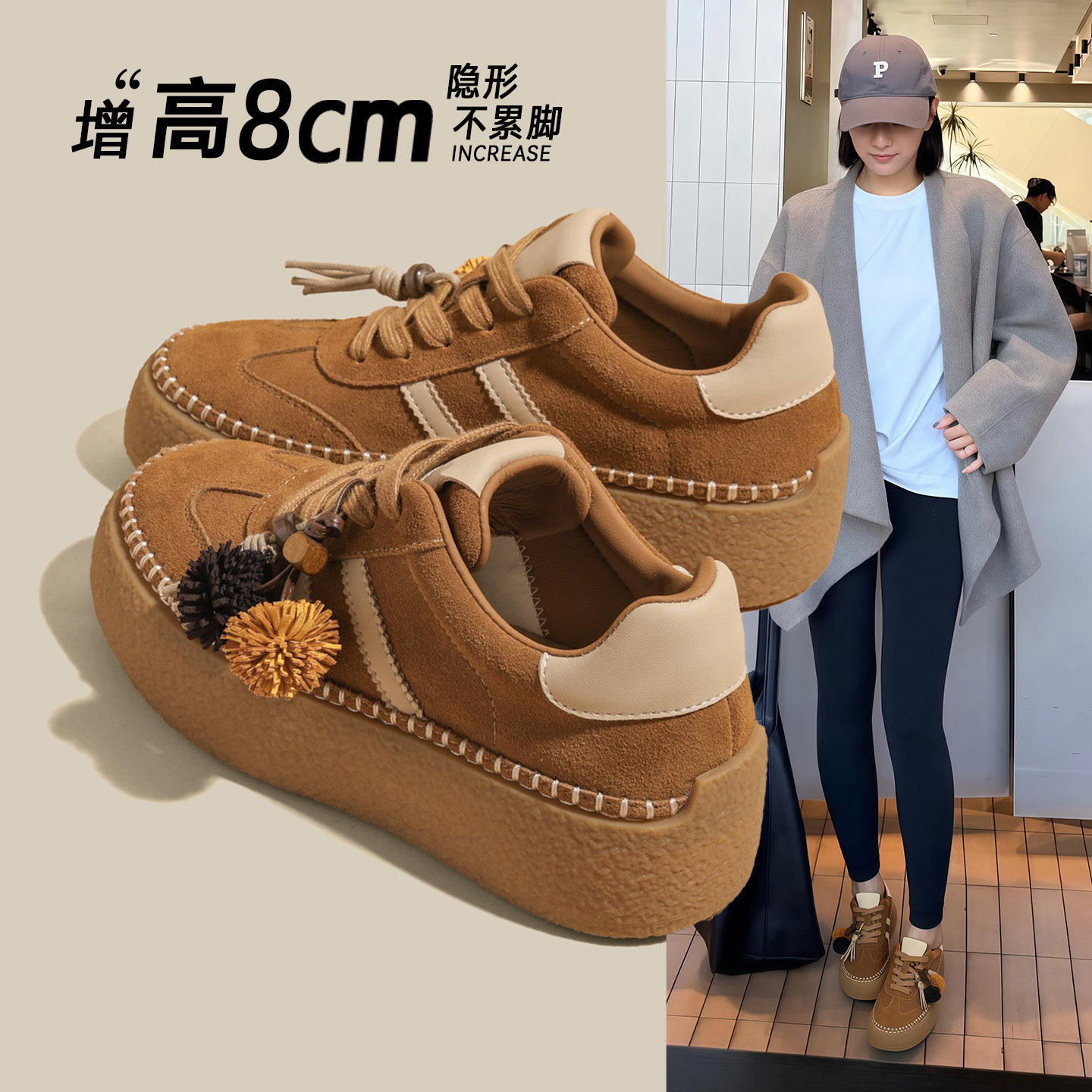 Hong Kong Maillard Thick Sole Heightened Training Shoes Women's 2026 Spring New Fashion Retro Versatile Casual Board Shoes Korean Version