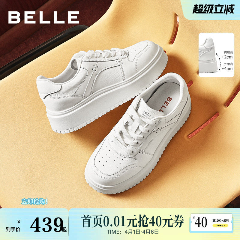 Belle Comfort Imprint Thick-soled Mesh White Shoes Women's 2026 New Inner Height Increase Casual Board Shoes B3058A Pre