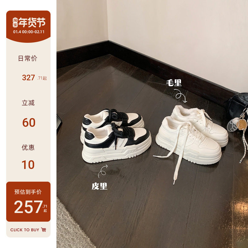 Hong Kong platform sports and leisure board shoes women's 2025 spring and autumn new explosive leather plush inner heightened moral training shoes