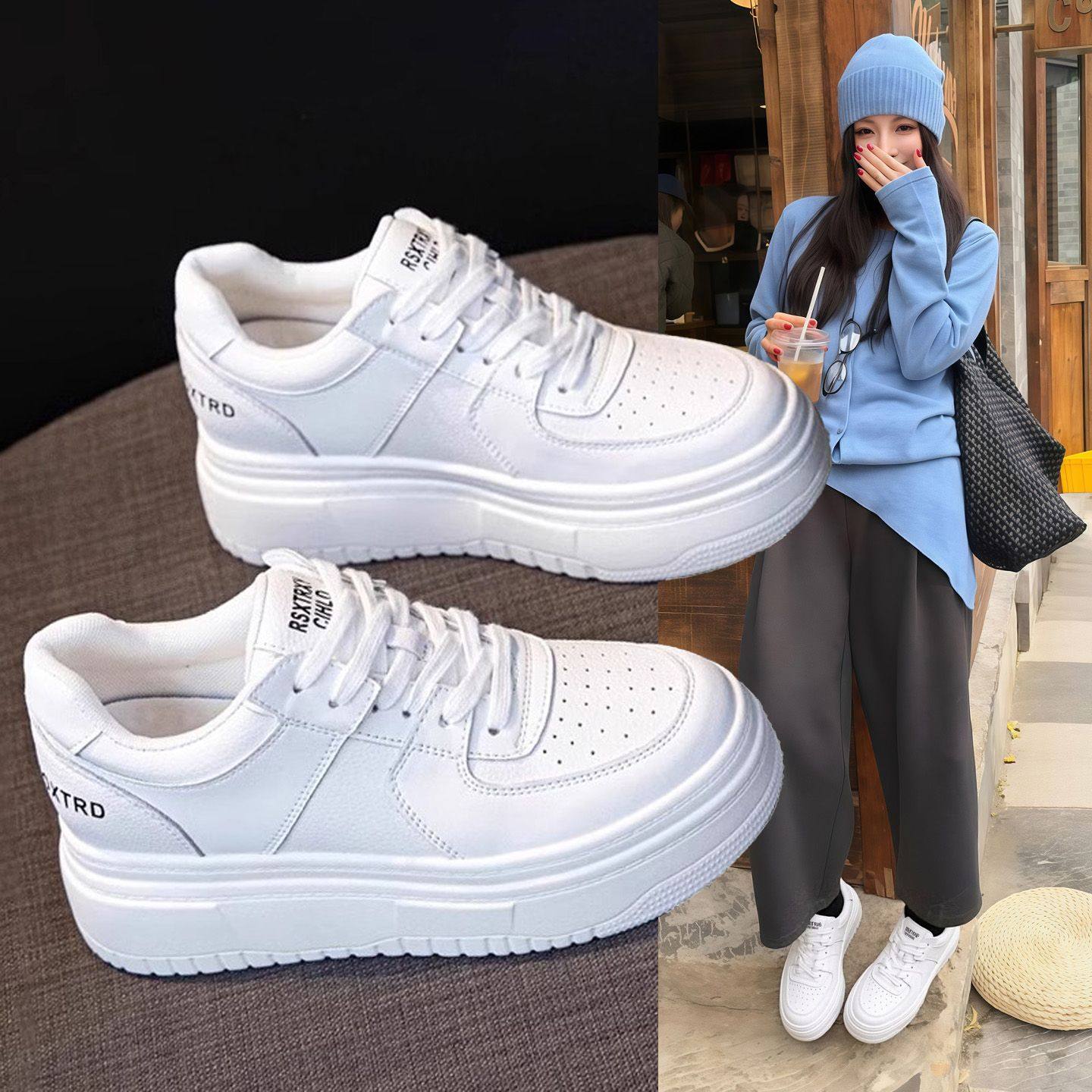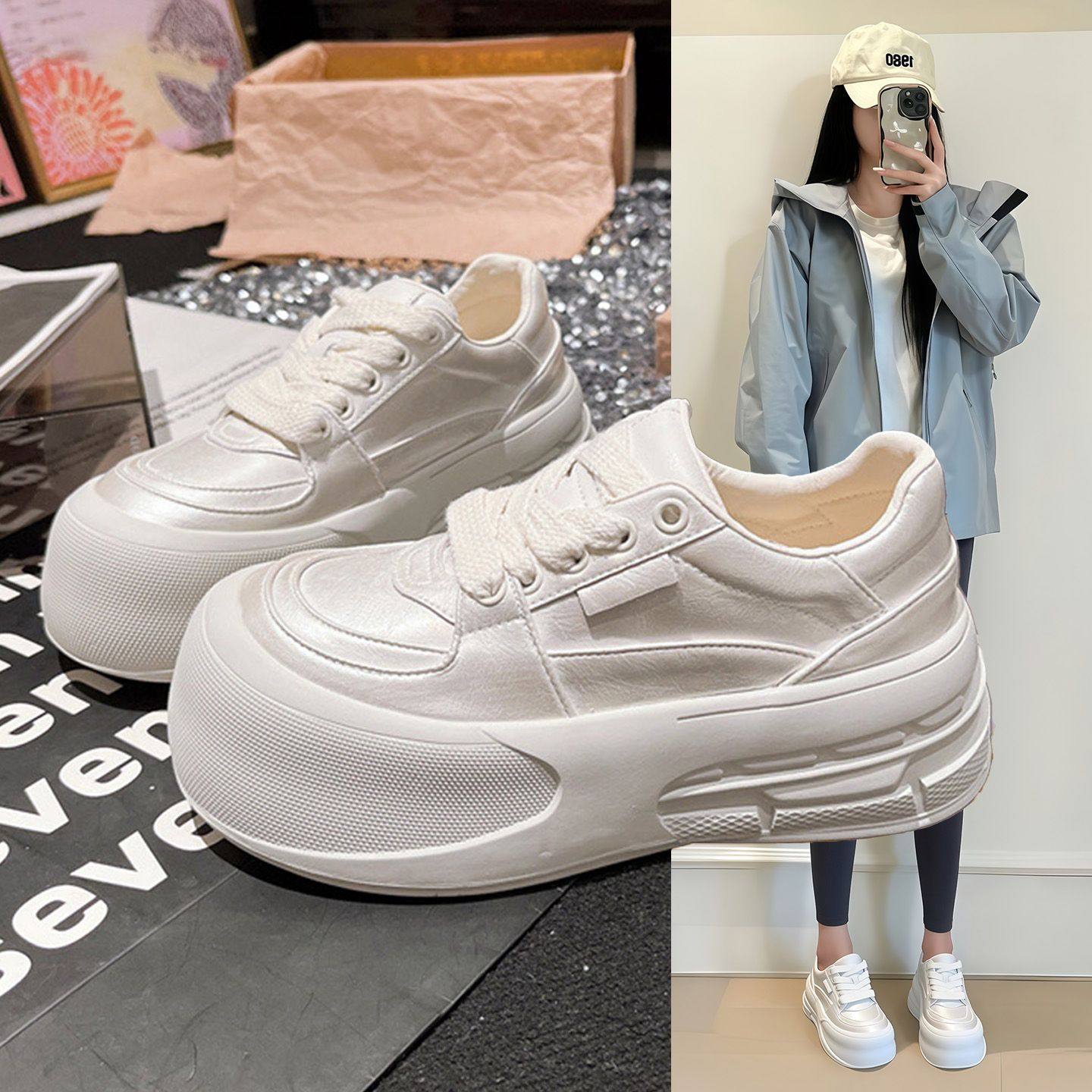 Hong Kong leather platform 2025 spring and autumn new white shoes women's versatile inner height Korean version of muffin shoe board shoes 3233