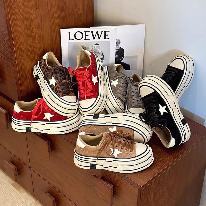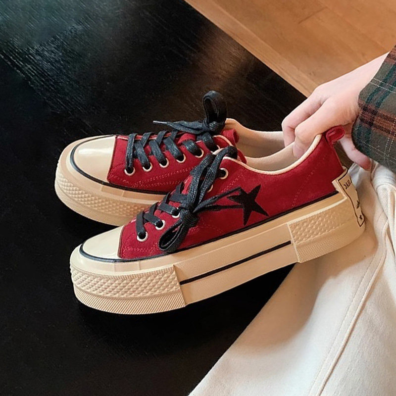 Hong Kong popular leather platform star board shoes women's 2026 spring and autumn lace-up versatile sports casual canvas shoes retro
