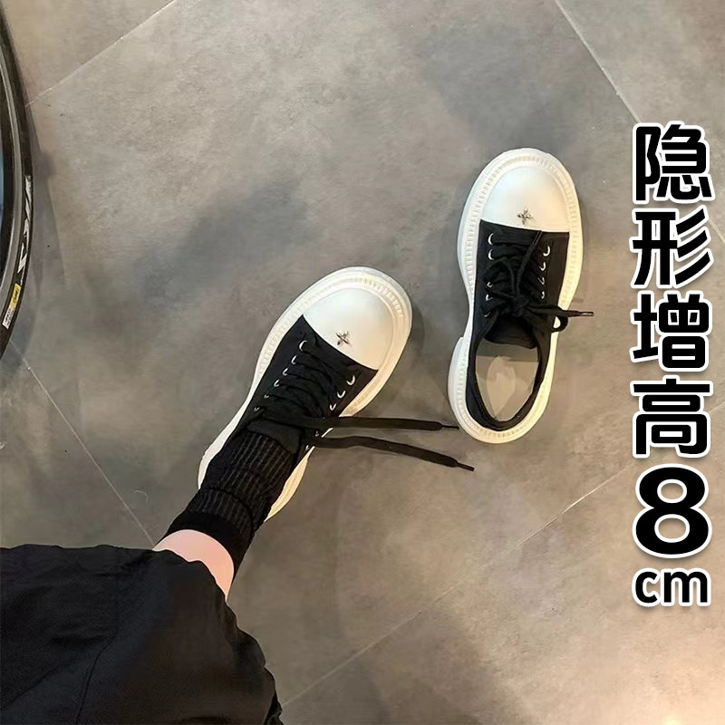 Hong Kong cross platform heightening board shoes women's 2025 spring new lace-up big-toe derby canvas casual shoe trend