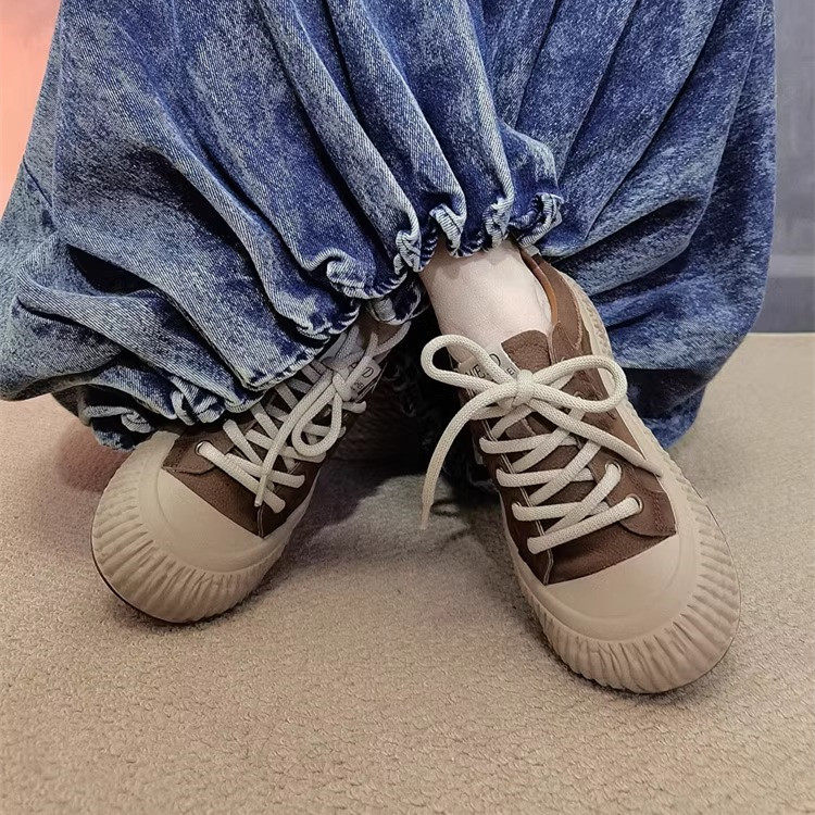 Hong Kong genuine leather capybara casual shoes women's 2025 autumn/winter new versatile bread shoes lace-up Maillard board shoes