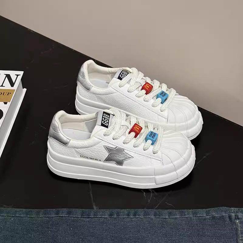 Hong Kong leather distressed star casual shoes women's 2025 spring and autumn new height-increasing dirty shoes, sports board shoes, white shoes