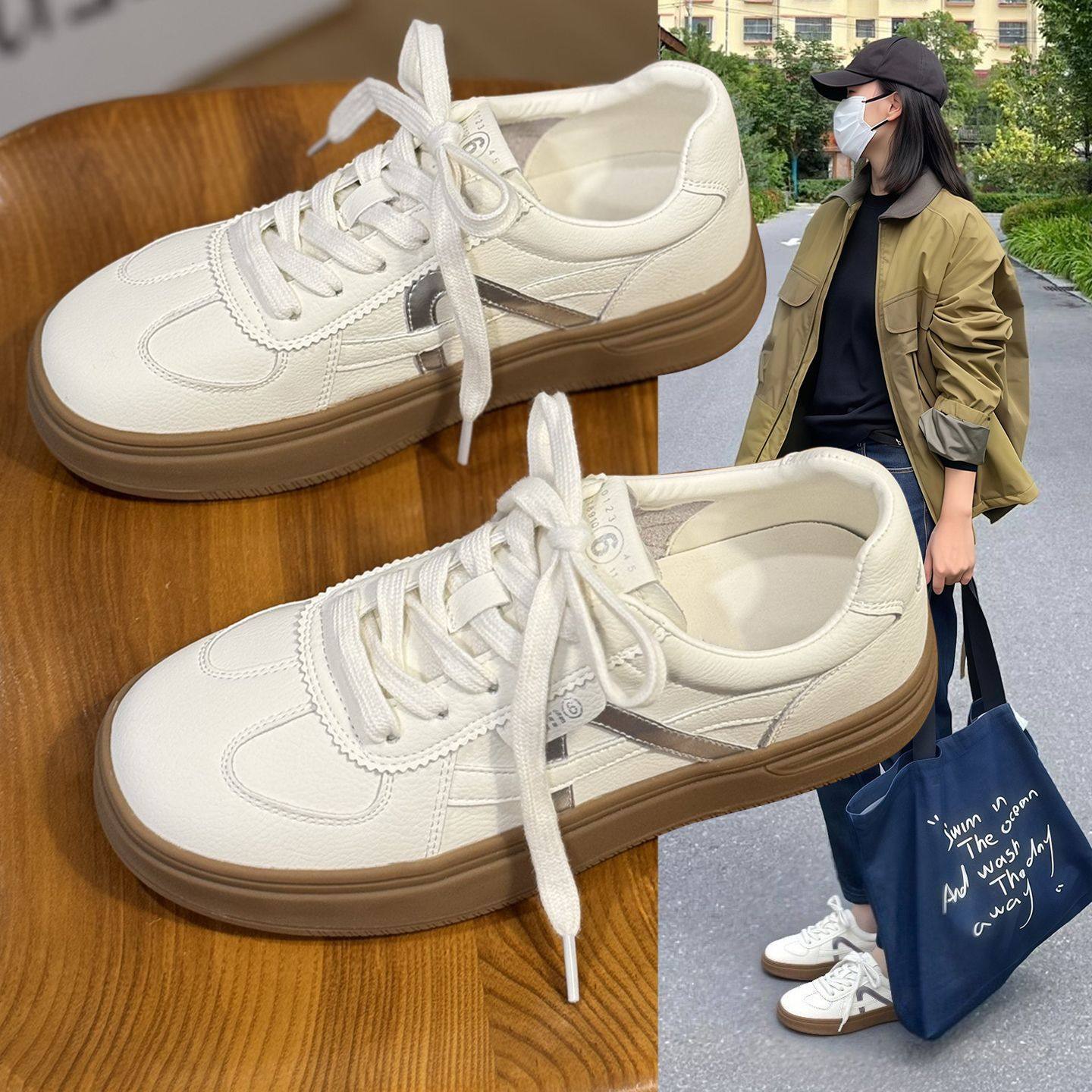 Hong Kong leather platform sole heightening versatile white shoes women's 2025 spring fashion German training shoes sports leisure board shoes Korean version