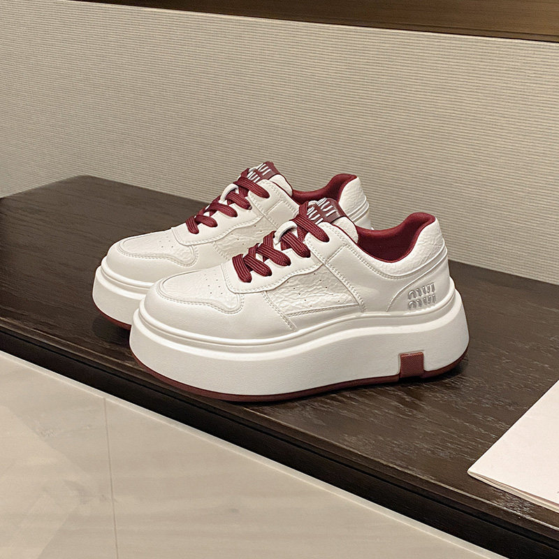 Hong Kong Encore Red Platform Height Increase White Shoes Women's 2025 Spring Leather Breadboard Shoes Versatile Korean Muffin Shoes
