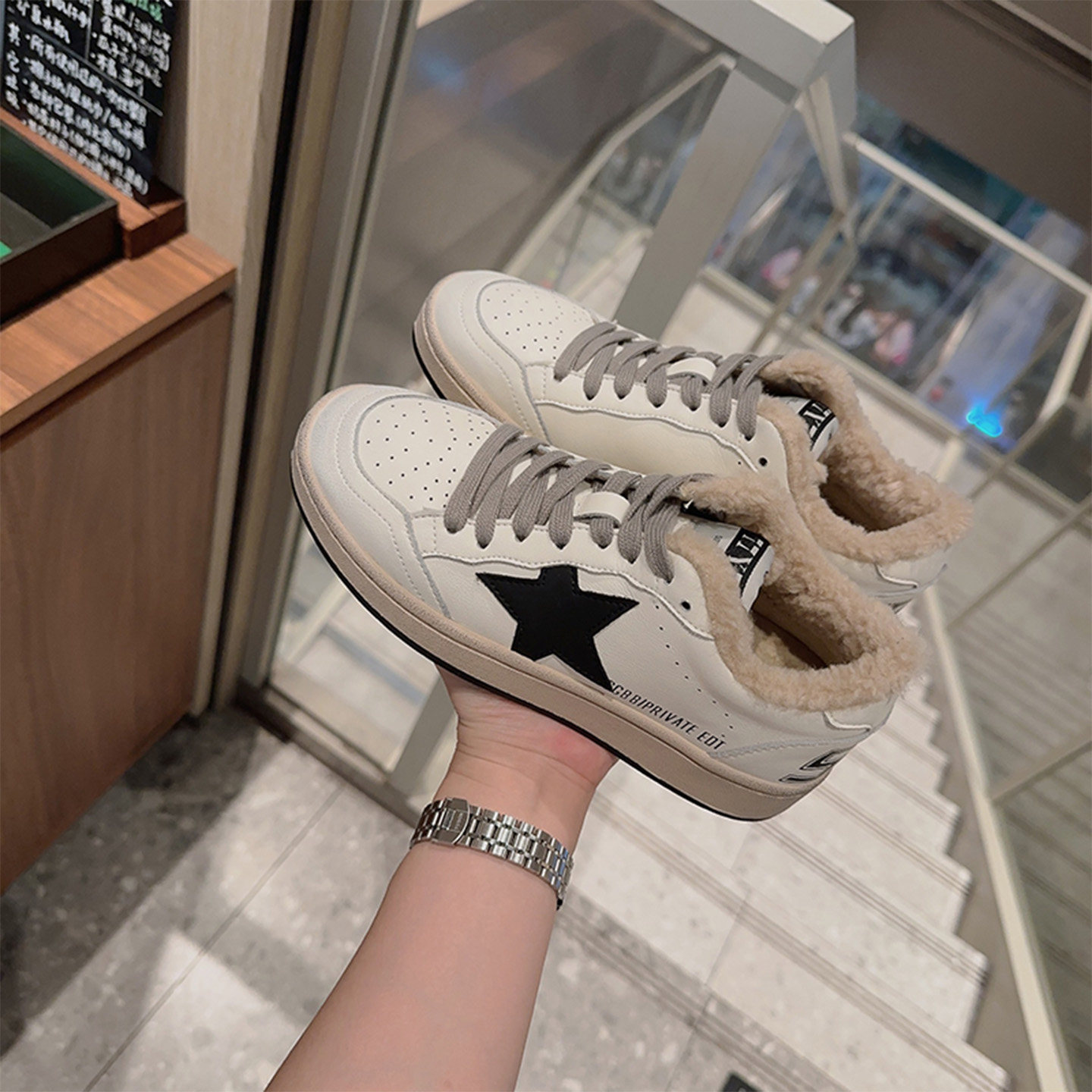 Hong Kong retro style leather plush white shoes women's 2025 autumn and winter new star casual sneakers dirty dirty board shoes