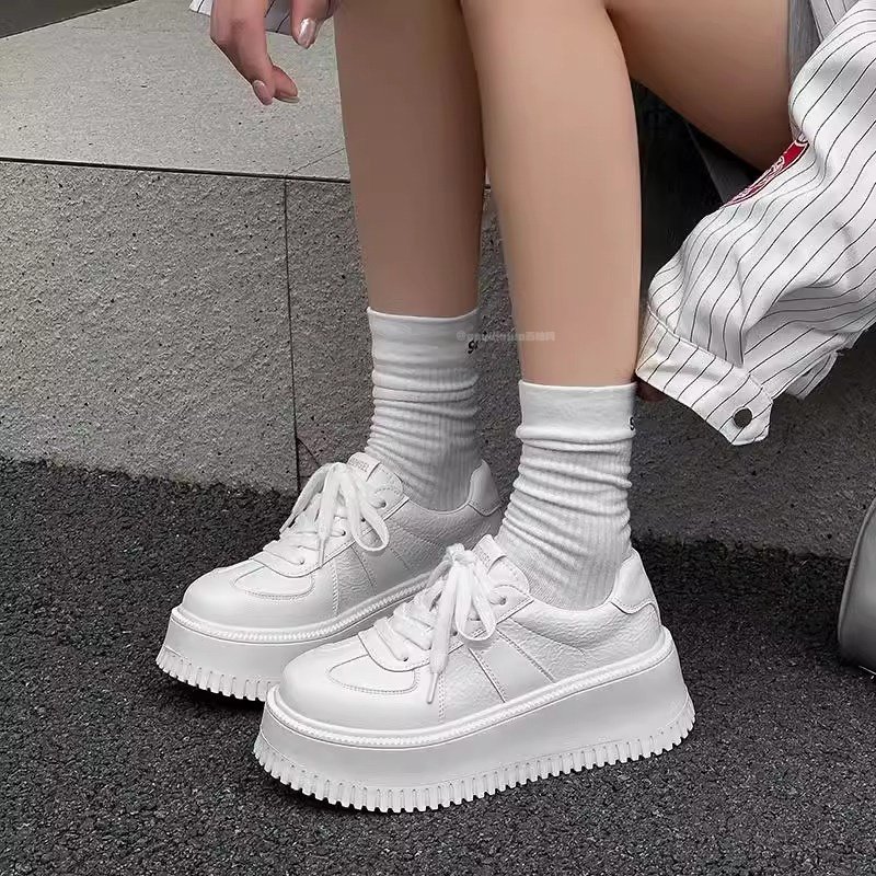 Hong Kong French muffin platform white shoes women's 2026 spring/summer new versatile sports fashion leather casual board shoes