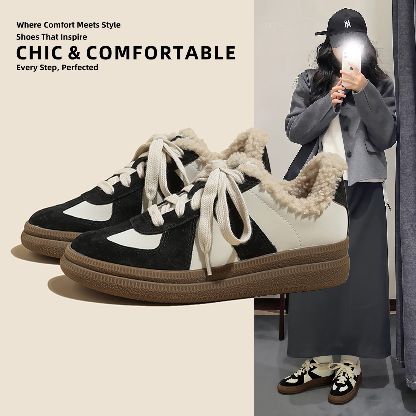 Hong Kong retro wool warm fleece German training shoes women's 2025 autumn and winter new athleisure leather Forrest Gump shoes
