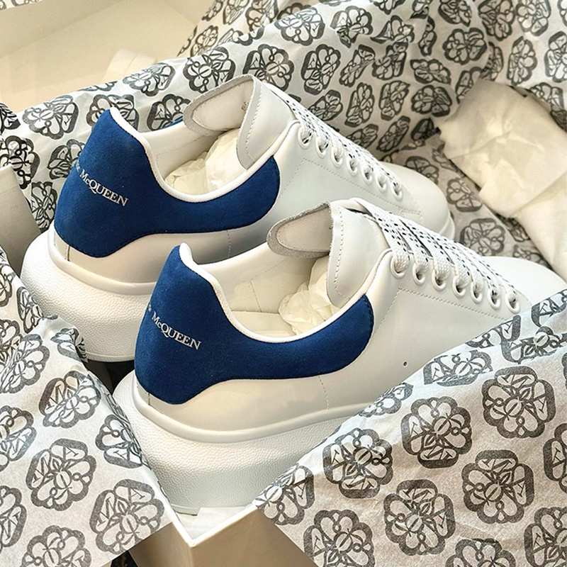 【High quality】McQueen white shoes are versatile women's platform soles increase height, 2025 summer new genuine leather explosive board shoes for men
