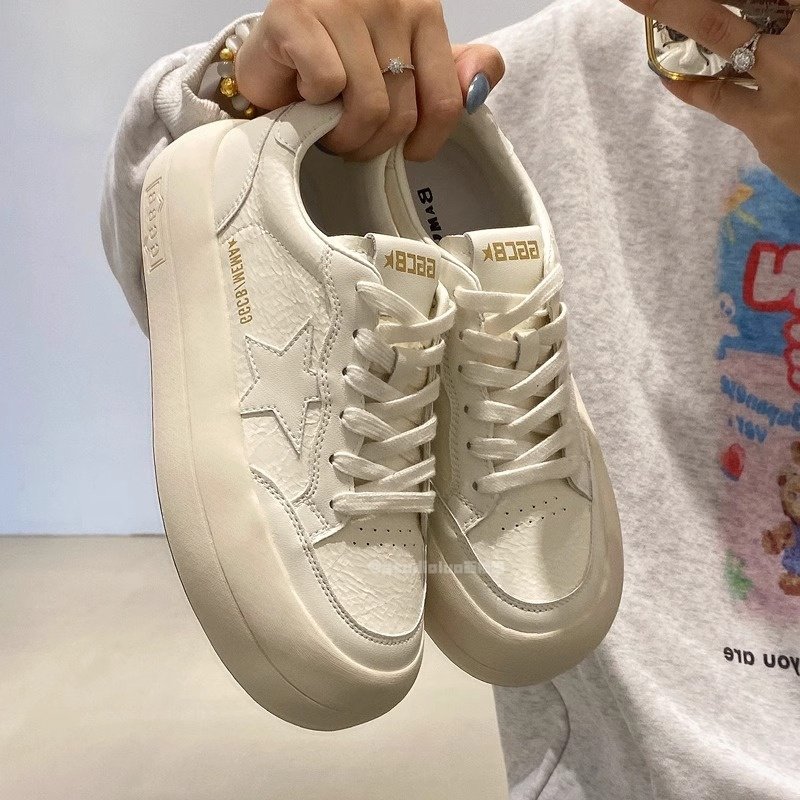 Hong Kong thick-soled heightened leather casual board shoes women's 2025 spring and autumn bread big head versatile fashion star white shoes