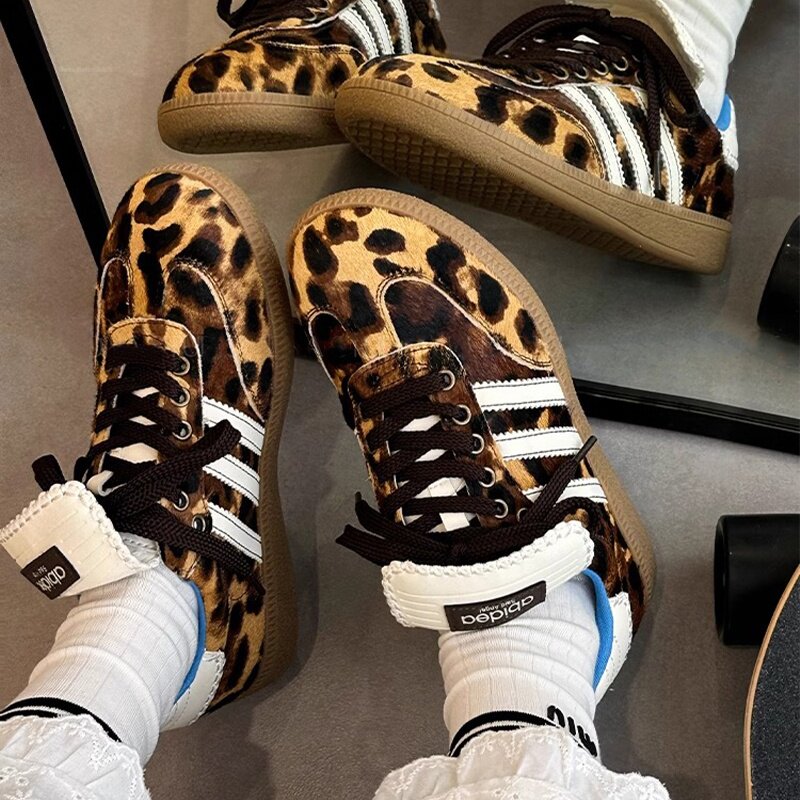Hong Kong Horsehair Leopard Print Ballet Training Shoes Women's 2025 New Retro Athleisure Round Toe Lace-up Silver Board Shoes