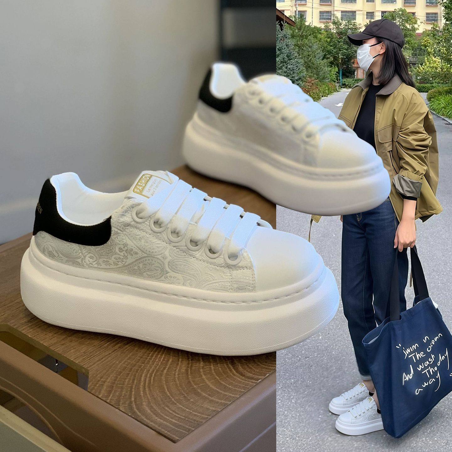 Hong Kong muffin thick-soled white shoes women's 2025 spring and autumn new simple national style retro lightweight height-increasing casual board shoes