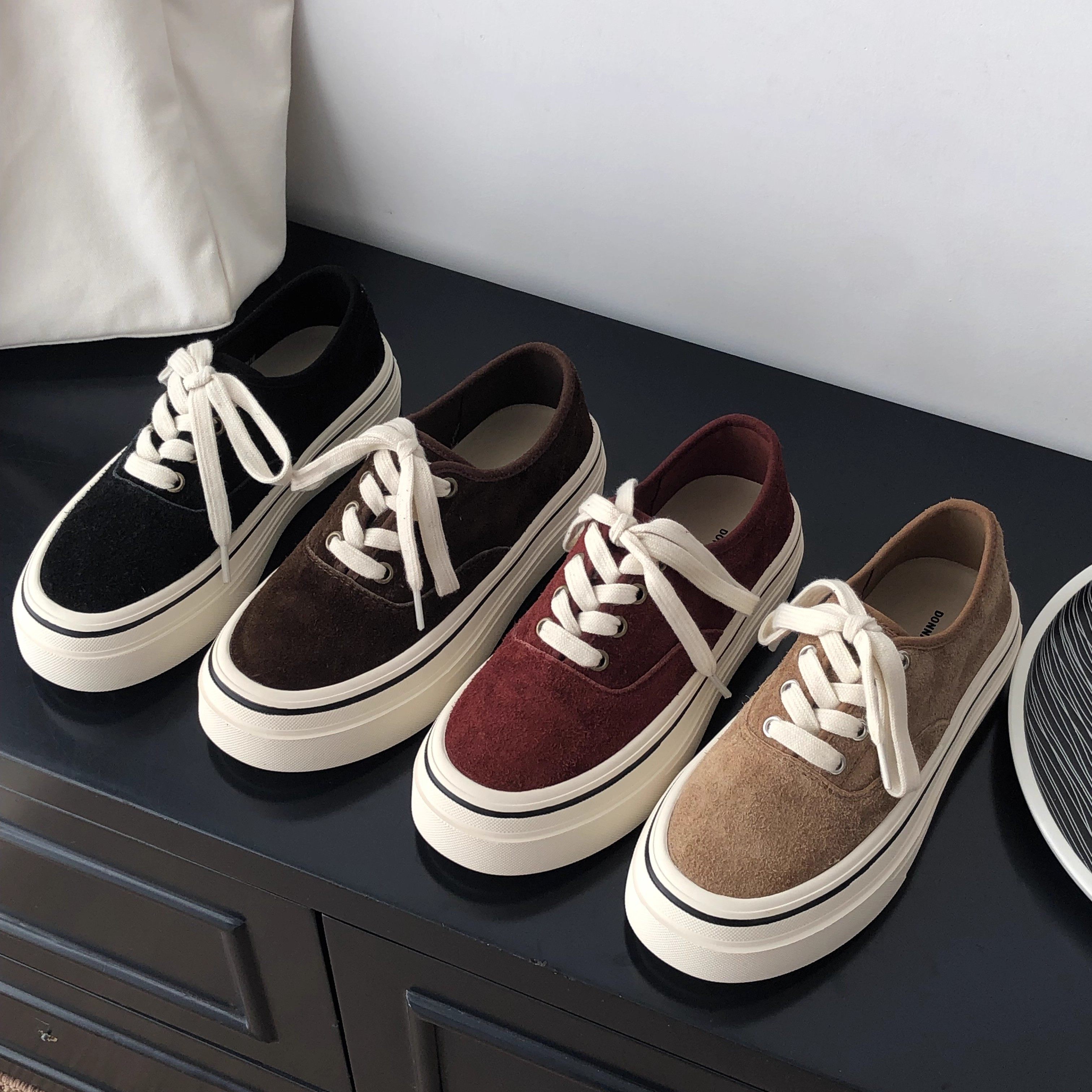 Hong Kong college style platform wool shoes women's 2025 autumn fleece heightening casual sports biscuit shoes leather board shoes women