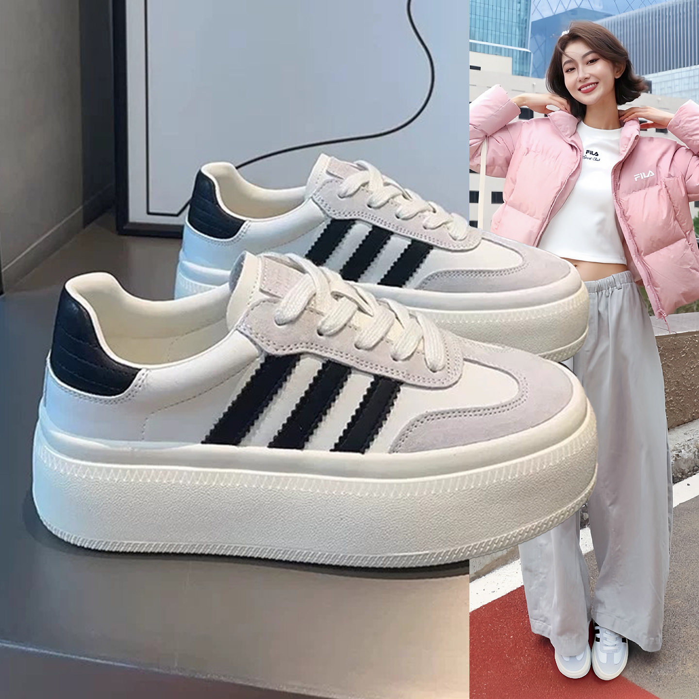 Hong Kong leather platform sole increase height training shoes women's 2025 autumn new versatile board shoes popular casual white shoes Korean version