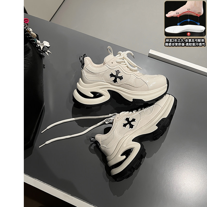 Hong Kong mesh breathable muffin casual board shoes women's 2026 summer new versatile small man thick-soled height-boosting white shoes