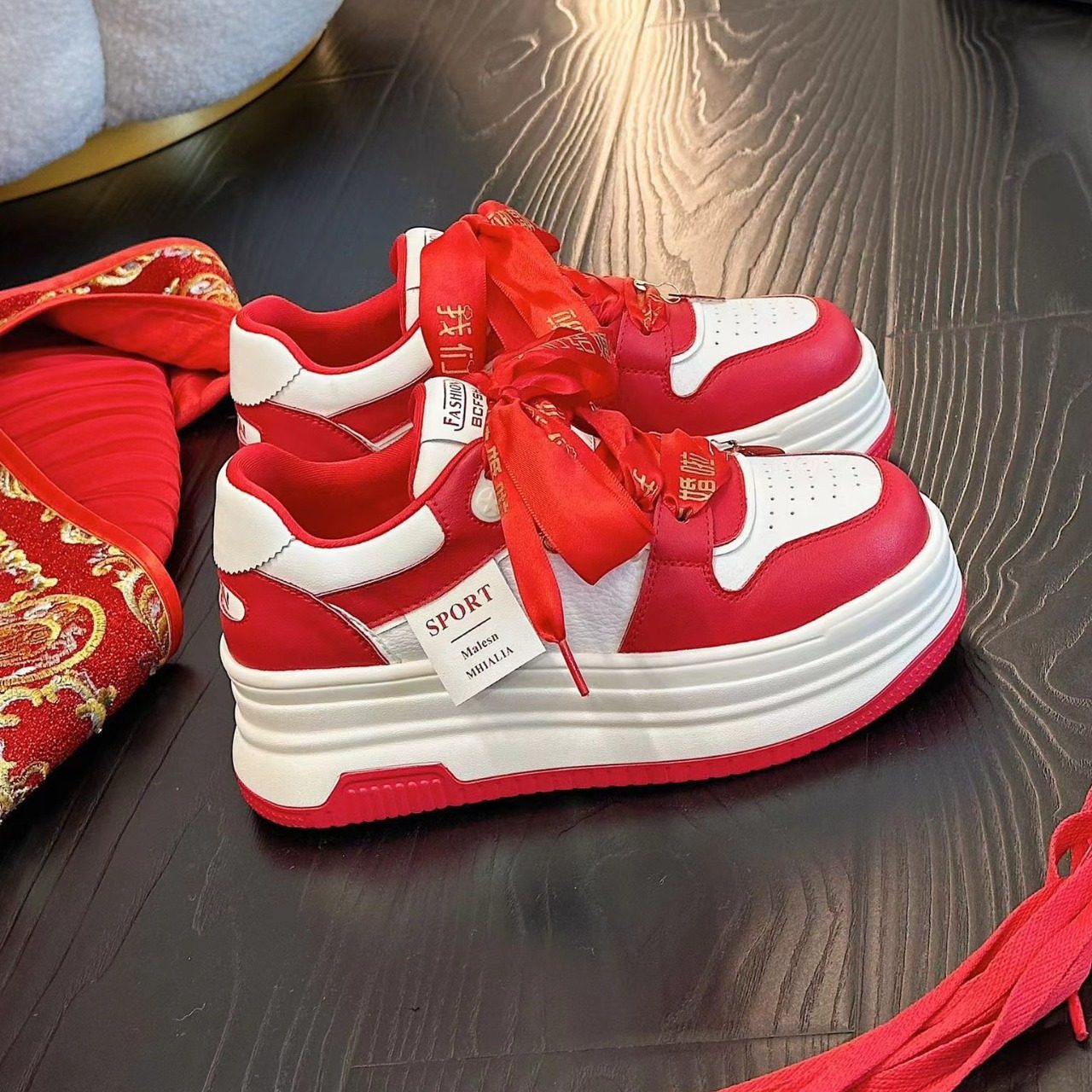 Hong Kong thick-soled height-booster shoes women's 2026 autumn new national style New Year red Xiuhe Hanfu bridal wedding shoes casual shoes