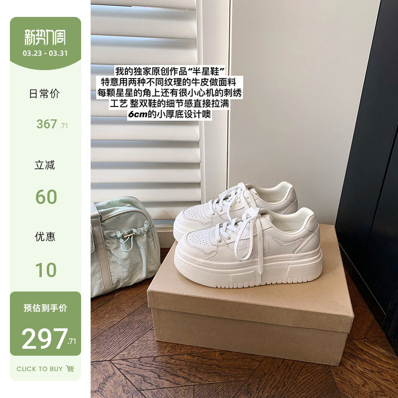 【sheii Su Yinyin】Ju Jingyi has the same style ~ original thick-soled cowhide casual board shoes, star shoes, women's white shoes