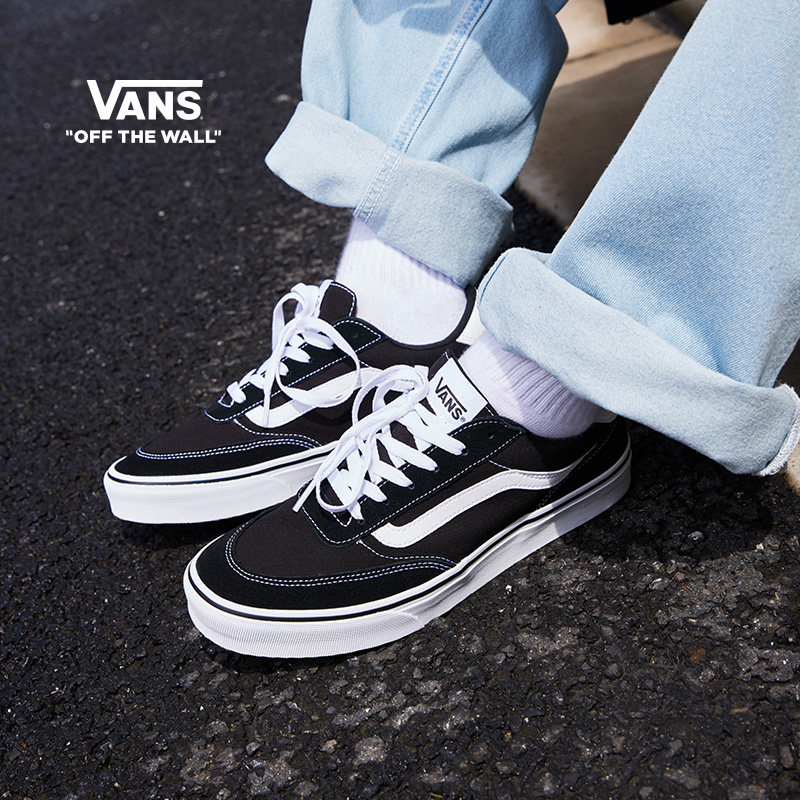 Vans official Brooklyn LS black minimalist retro board shoes classic casual shoes low top