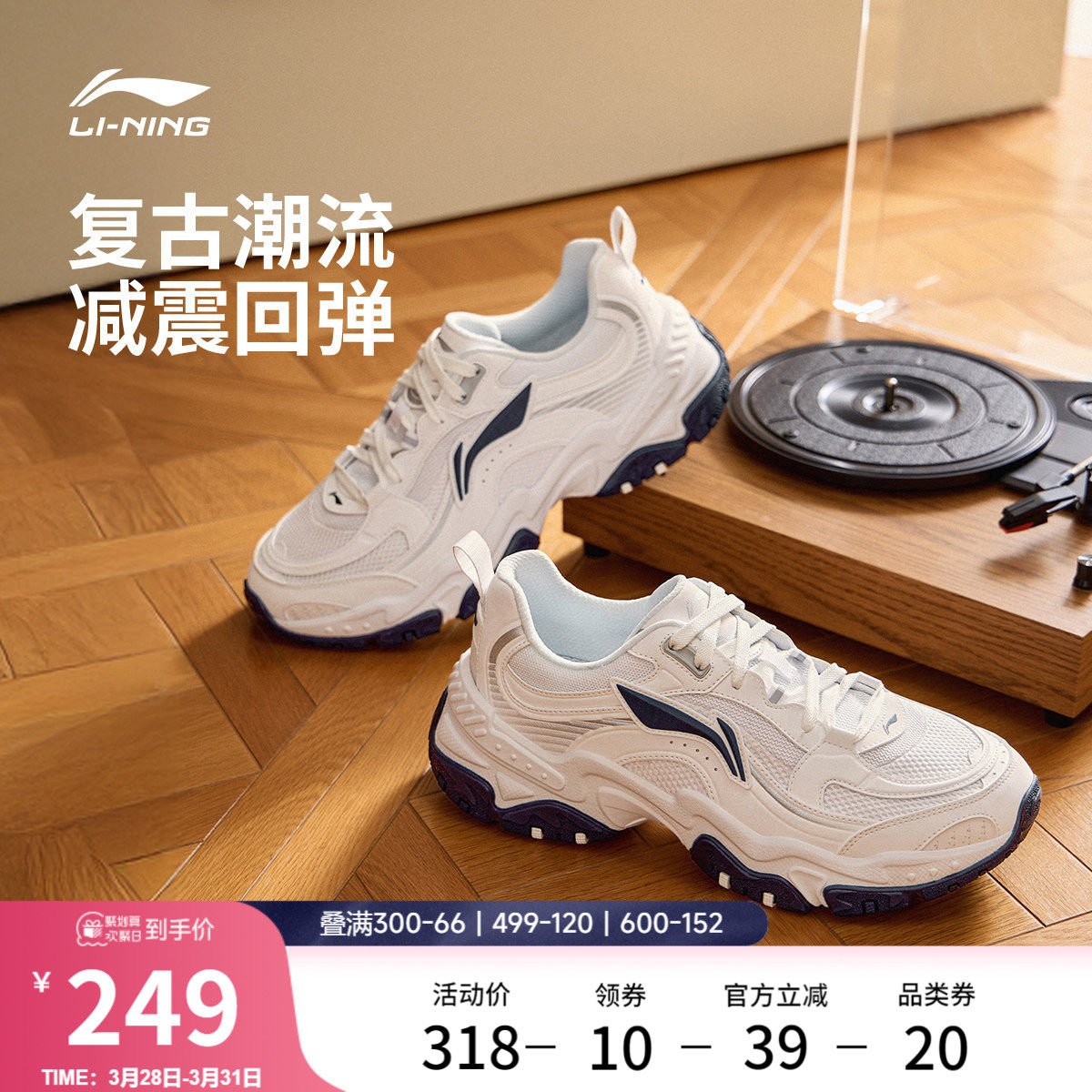 Li Ning Brown Sugar丨Casual shoes, men's shoes, new retro daddy shoes, shock-absorbing rebound, thick-soled heightening running sneakers