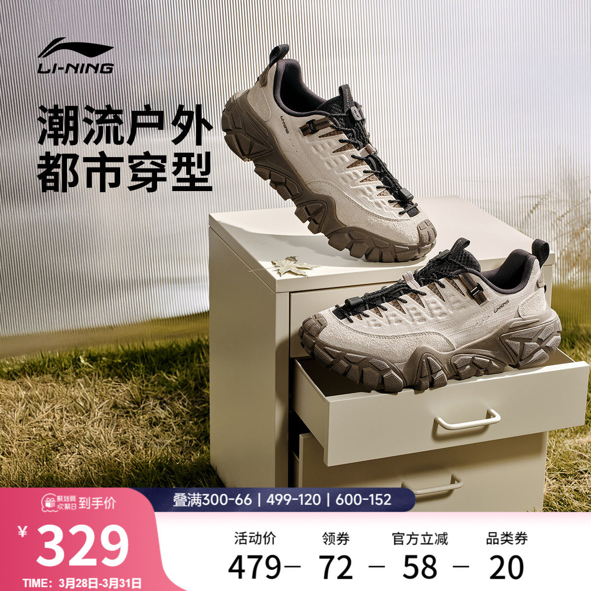 Li Ning Sand Dune丨Casual shoes, men's shoes, new mountain light outdoor dad shoes, wear-resistant non-slip running sneakers, women